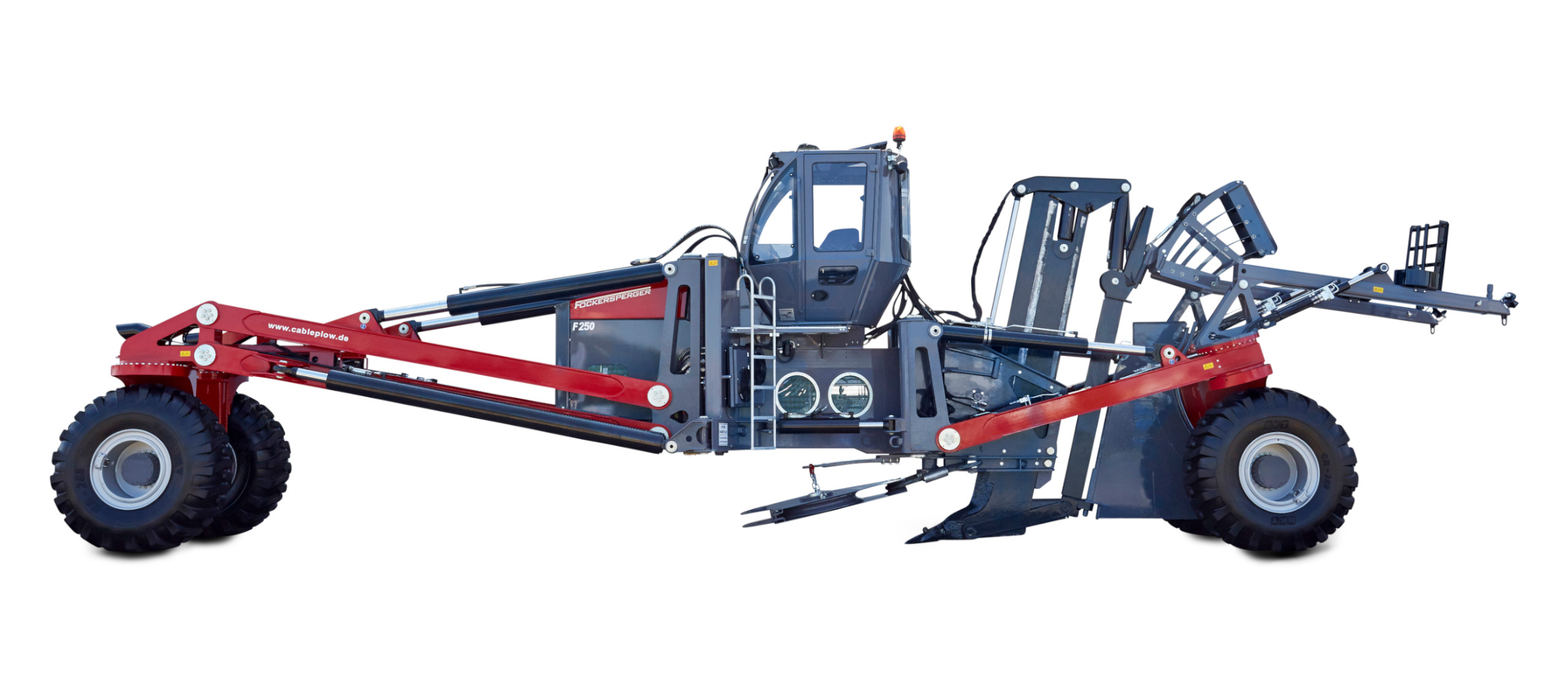 Plowing in of control, telephone, fiber optic and power cables, cable protection pipes, drinking water, sewer and gas lines.